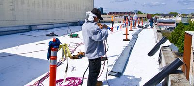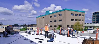 IB Roof Systems applies an acrylic-based top coat, Sta-Clean™, on all of their membranes that will not only keep the roof clean much longer than other standard membranes but keep IB's white membrane reflective longer with less maintenance to save more in energy costs than standard membranes as well.