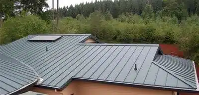 Modern metal roofing is high tech, high style, and will virtually last forever. Metal roofing is typically 24 or 26 gauge in thickness, so it is very sturdy but, at the same time, very lightweight. Metal is also fireproof and, depending on your location, may help lower your home insurance. Metal can often be installed over an existing roof which would save you the additional cost of a tear-off. Many colors are available. Paint is siliconized polyester with weather resistant polymers baked in at the factory. A metal roof can last between 40 and 70 years. This material is highly durable and requires minimal maintenance.